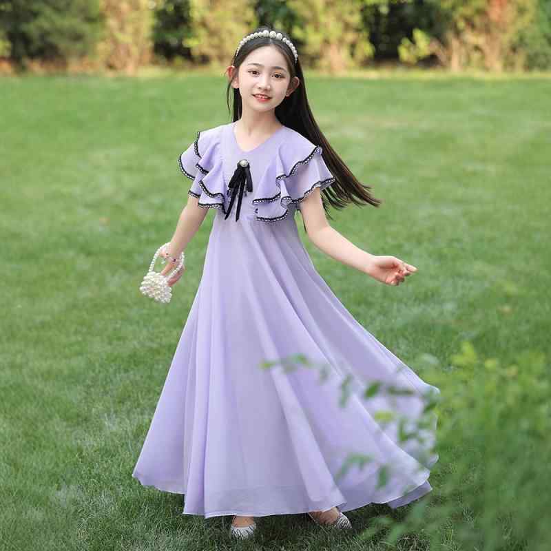 ワンピース 女の子 子供 ビーチワンピース プリンセススタイル 膝丈ワンピース ポリエステル 無地 パープル ホワイト レッド 120cm 130cm 140cm 150cm 160cm 170cm
