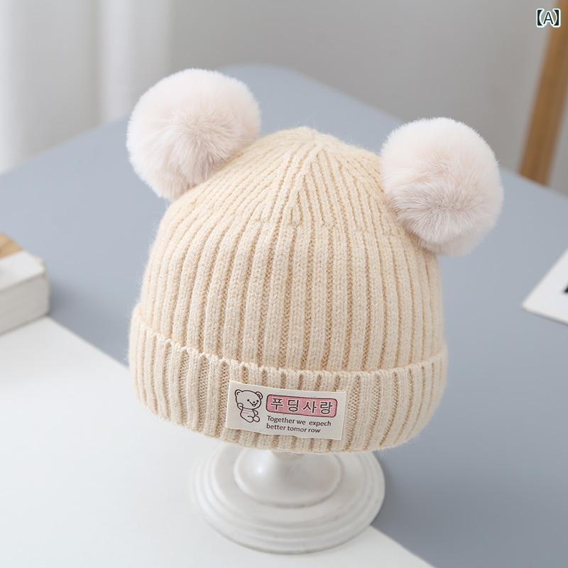 ニット帽 ベビー 赤ちゃん キッズ 男の子 女の子 ファッション 秋冬 防寒 暖かい 耳 かわいい ウール ベージュ レッド ブルー