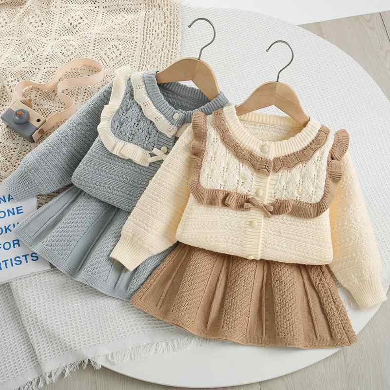 ・カテゴリ: キッズセットアップ・性別: 女性・スタイル: 韓国・セット内容: スカートセット・セット点数: 2点セット・内容物: 衣類・対象年齢: 3~8歳(身長100~140cm)・シーズン: 冬、春、秋・袖丈: 長袖・生地加工: 柔軟加工、酵素洗い・厚さ: 普通・柄: 無地・デザイン要素: セットアップ、かわいい、カーディガン、レース、トレンド・生地: ニット・主な素材: アクリル50%・留め具: シングルボタン・カラー展開: ピンク、レッド、ライトブルー、オフホワイト・適応身長: 90cm、100cm、110cm、120cm、130cm