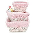 【中古】【輸入品・未使用】Set of 3 Baby Girl Nursery Storage Baskets - White Willow with Pink Cotton Gingham Fabric by Burton & Burton [並行輸入品]