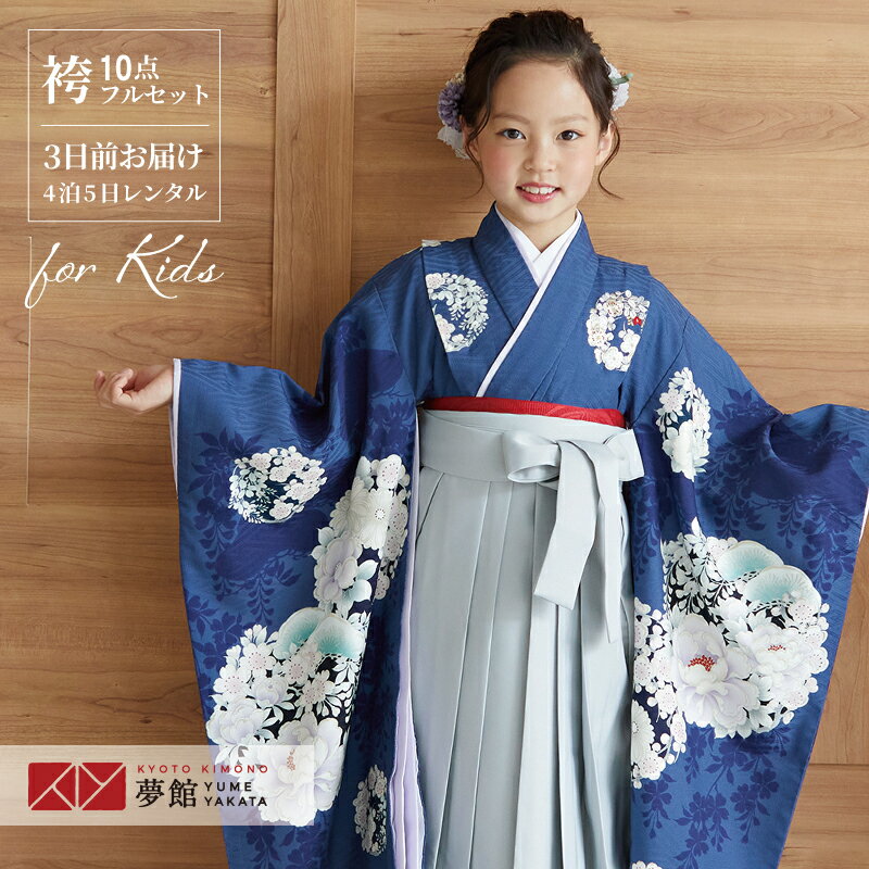【レンタル】卒園式 袴 女の子 レンタル【NATURAL BEAUTY】 紺 椿梅花丸に牡丹【N053】袴レンタル 七五三 着物 7歳 初詣 保育園 卒園 幼稚園 往復送料無料