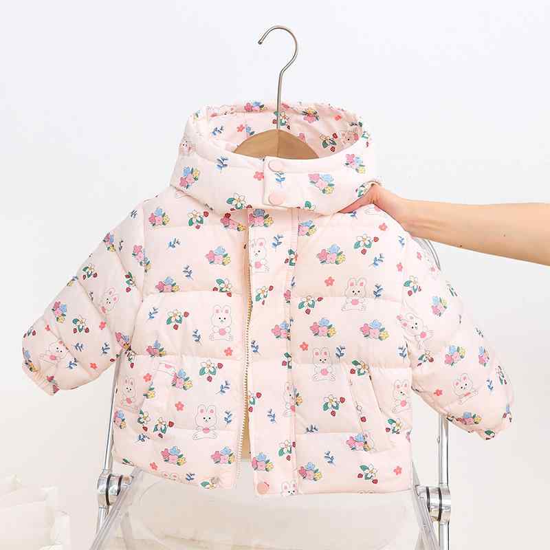 子供用綿入りコート ガールズ フラワープリント 中綿入りジャケット 秋冬 防寒 暖か 裏起毛 トップス