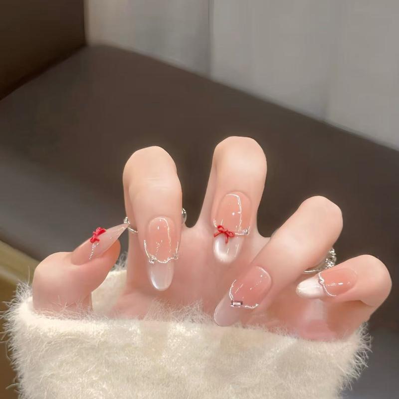 つけ爪 レディース かわいい 蝶結び 猫目風 取り外し可能 ショート/ミディアム/ロング 楕円/アーモンド/バレリーナ型 水光デザイン 無地 レトロ スタイル ヨーロッパ/アメリカ/韓国風