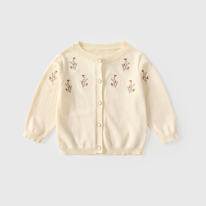 子供服 ニットカーディガン 女の子 ベビー服 春秋 花柄 コットン100% 長袖 アウター 乳幼児向け かわいい おしゃれ ベージュ系 80 90 100 110cm