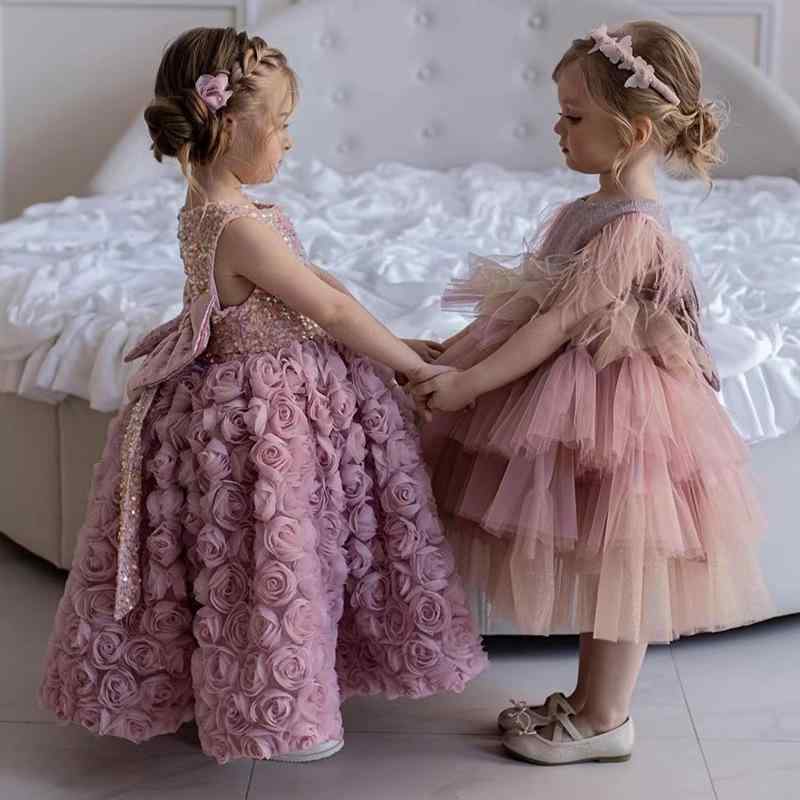 子供用ドレス ガールズ ローズ柄 プリンセスドレス 結婚式 発表会 パーティー フォーマルドレス チュールスカート 80cm 90cm 100cm 110cm 120cm 130cm 140cm 150cm 160cm