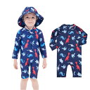 [YERAN] ベビー 水着 男の子 女の子 ラッシュガード ロンパース キャップ付き 長袖 恐竜 赤ちゃん 子供 男児 UPF50+ UVカット 体型カバー 超かわいい キッズ オールインワン 2点セットみずぎ 赤ち
