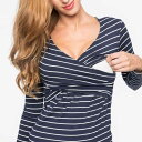 Tシャツ レディース 授乳服 妊婦服 長袖 トップス ストライプ Vネック 産前 産後 ゆったり 普段使い かわいい 清新 快適 伸縮性 カジュアル 紺色 白 春