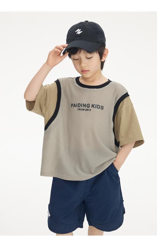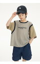 Tシャツ キッズ 半袖 男の子 子供服 夏 カジュアル アウトドア フェイクレイヤード 重ね着風 トップス カットソー 普段使い 通園 おしゃれ グレー カーキ