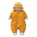 カバーオール ベビー 男女兼用 新生児 男の子 女の子 秋冬 厚手 裏起毛 フード付き 長袖 前開き ジッパー お出かけ 外出用 部屋着 綿混 ポリエステル 肌に優しい 縫い目なし