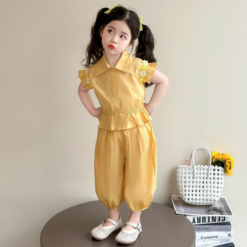 ・カテゴリ: キッズセットアップ・性別: 女児・スタイル: 韓国風・セット内容: パンツセット・セット点数: 2点セット・対象年齢: 3〜8歳・袖丈: 半袖・フード: なし・パンツ丈: ショート丈・生地加工: 柔軟加工・厚さ: 薄手・柄: 無地・画像: モデル着用実写・デザイン要素: セットアップ、トレンド・縫製: 1インチあたり12〜14針・生地名: 綿混紡・主な素材: 綿・主な素材混率: 綿11%・安全基準: B類・開閉: プルオーバー・カラー展開: イエロー、グリーン・対応身長: 90cm、100cm、110cm、120cm、130cm、140cm