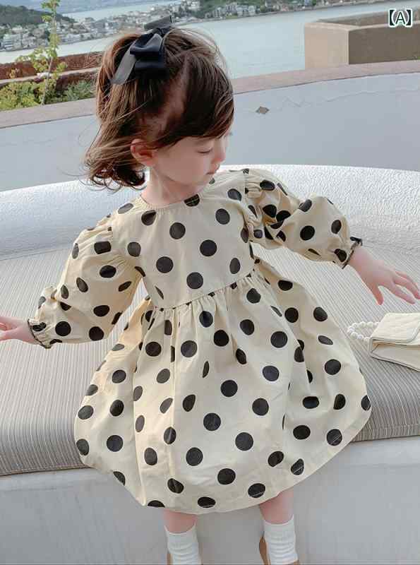ワンピース 女の子 キッズ 子供 かわいい 水玉 春秋 赤ちゃん ランタン スリーブ フォレスト レトロ プリンセス