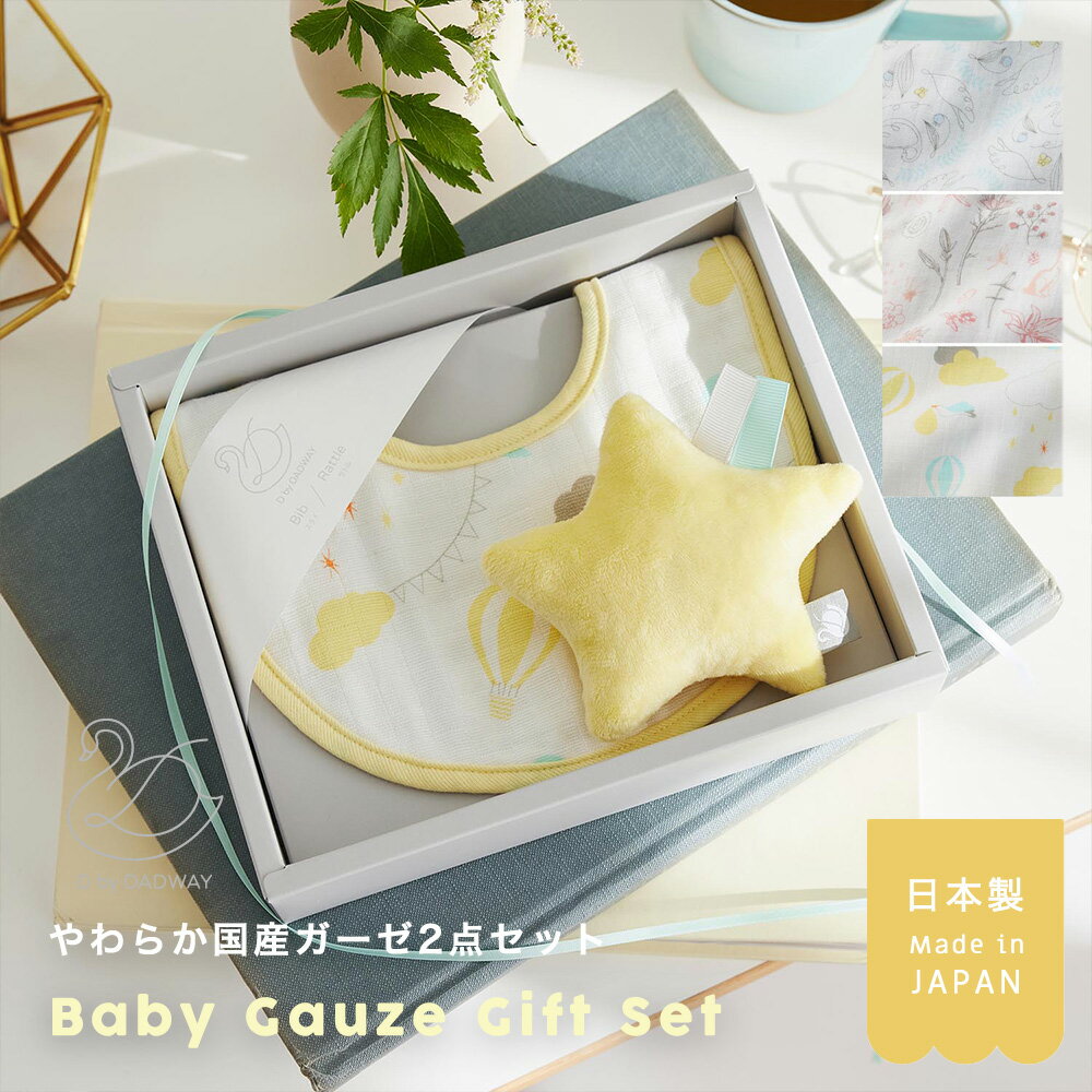 【送料無料】ガーゼビブ ベビー ギフトセット ガーゼスタイ ラトル 2点セット D by DADWAY ディーバイダッドウェイ よだれかけ 新生児 国産 ダブルガーゼ 日本製 ガーゼケット 男の子 女の子 ギフト プレゼント 出産祝い