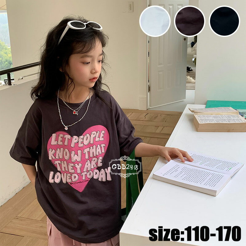 子供服 Tシャツ 半袖 キッズ 女の子 半袖tシャツ プリント トップス インナー 夏服 こども 可愛い きれいめ 通園 通学 ホワイト ブラック ダークグレー 110 120 130 140 150 160 170cm