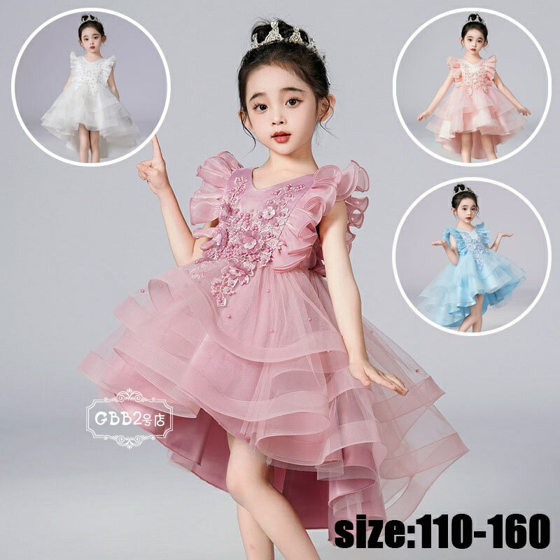 ピアノ発表会 子供ドレス 女の子 フォーマルドレス 子どもドレス レースドレス プリンセスドレス ワンピース チュールスカート おしゃれ お姫様 可愛い ジュニア服 結婚式 七五三 パーティードレス ホワイト ブルー ダークピンク ピンク110 120 130 140 150 160cm