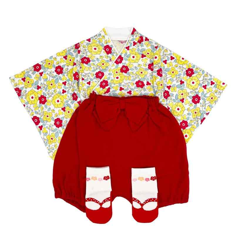 [DINETTE] ベビー 袴 セパレート 靴下セット ロンパース 和装 着物 女の子 男の子 70cm 80cm 90cm お食い初め 衣装