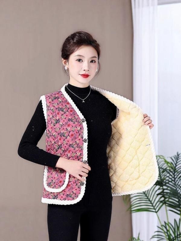 ・款式: 开衫・衣长: 普通款(50cm<衣长≤65cm)・领型: V字领・图案: 千鸟格・流行元素: 纽扣・面料名称: 涤纶・主面料成分: 涤纶(聚酯纤维)・颜色: 随机花色, 红花, 藍花, 粉花, 卡其色, 小红叶子, 新卡其花色, 藍色小碎花, 粉色小碎花, 黒白格子・尺码: 3XL, 4XL, 5XL・风格类型: 气质通勤・填充物: 涤纶棉・门襟: 单排多扣・主面料成分含量: 90%-95%・风格: 都市风・适用年龄段: 成人・适用性别: 女・版型: 常规・产品类别: 马甲/背心・主面料成分2: 涤纶(聚酯纤维)