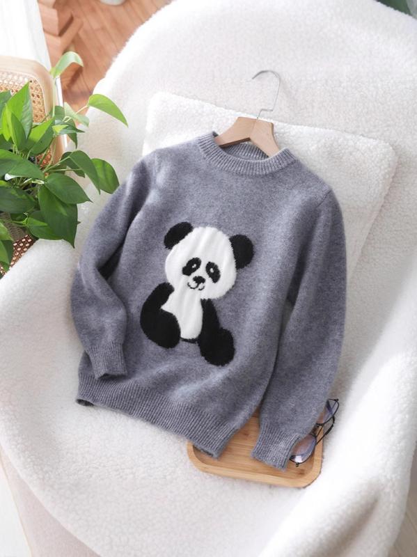 2ニット キッズ 秋冬 加厚 ラウンドネック ウール セーター 慵懶 カジュアル パンダ 男女兼用 針編み トップス インナー