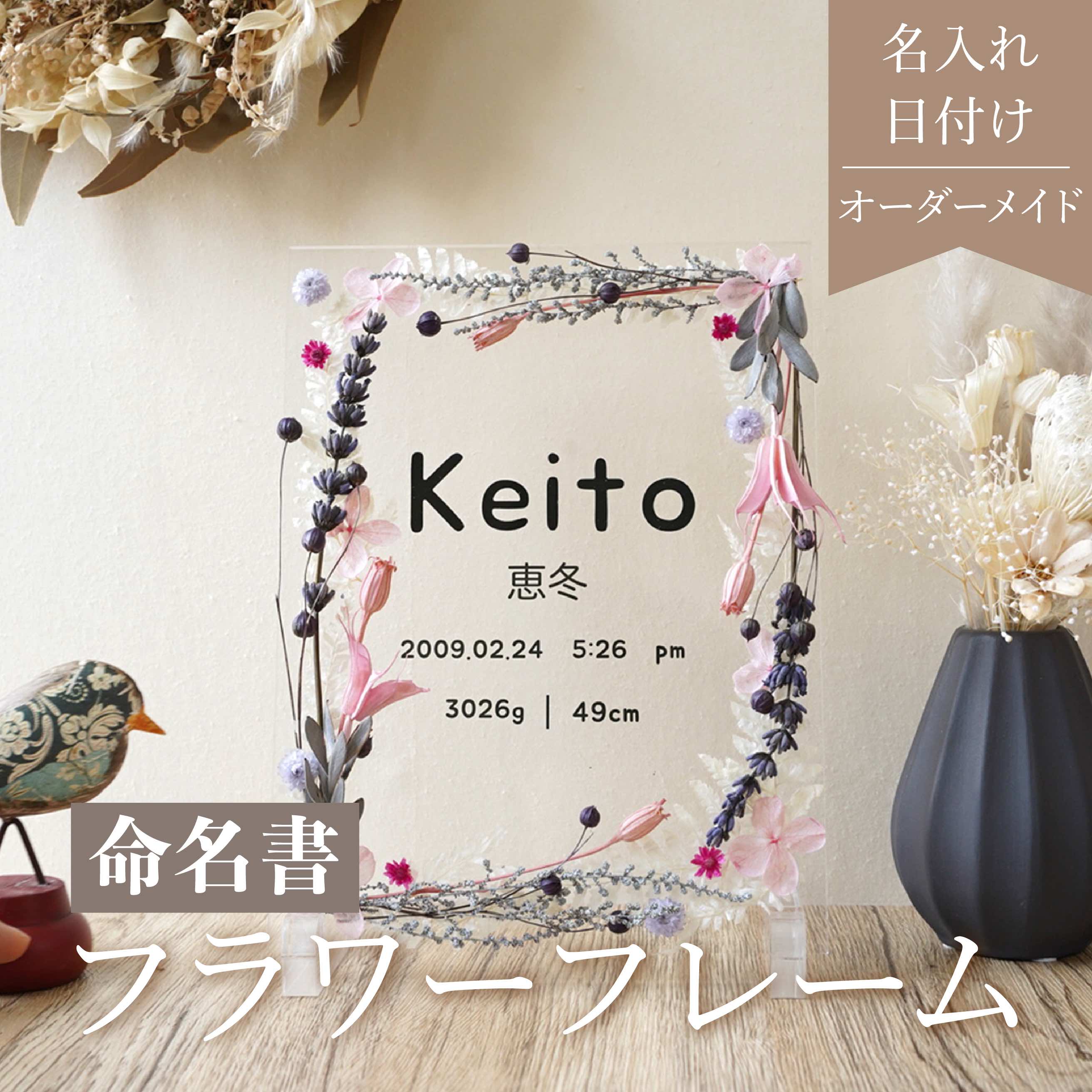 【最大4,000円OFF】【 命名書 flower flame Pink i06 】命名書 おしゃれ かわいい オーダー オーダーメイド Baby 赤ちゃん 出産祝い ニューボーン プリザーブドフラワー 記念日 プレゼント 記念 ドライフラワー 透明 クリア お花 額 フレーム