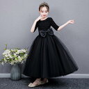 子供ドレス 黒 ロングドレス ピアノ発表会 ドレス 女の子 ブラック 女児ドレス 演奏会ドレス リボン 可愛いドレス Aライン チュール キッズドレス 卒園式 入学式 誕生日 プリンセスドレス 5分袖 ラウンドネック キレイめ オシャレ 送料無料 100 110 120 130 140 150 160