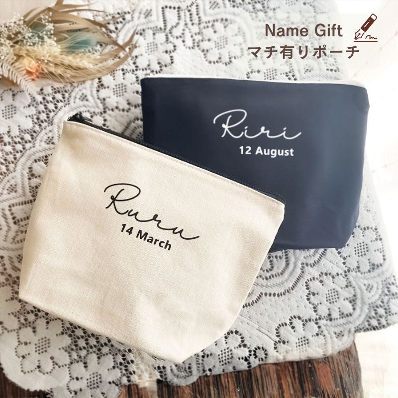 \ 名入れ / マチ有りポーチ HAL おしゃれ 筆記体 スクリプト 名入り 名前入りポーチ おむつポーチ オムツポーチ 化粧ポーチ プレゼント 出産祝い 誕生日 ポーチ LD ファブリック製品