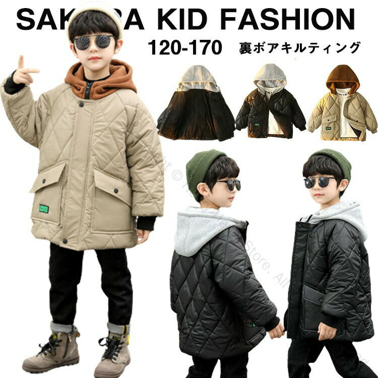 モッズコート コート 子供 子ども こども キッズ アウター ジャケット ロングコート キルティング 長袖 ロング フード付き 裏ボア 上着 羽織り ゆったり 秋 冬 暖かい 防寒 男の子 ジュニア 120 130 140 150 160 170cm 軽量で動きやすい防寒着