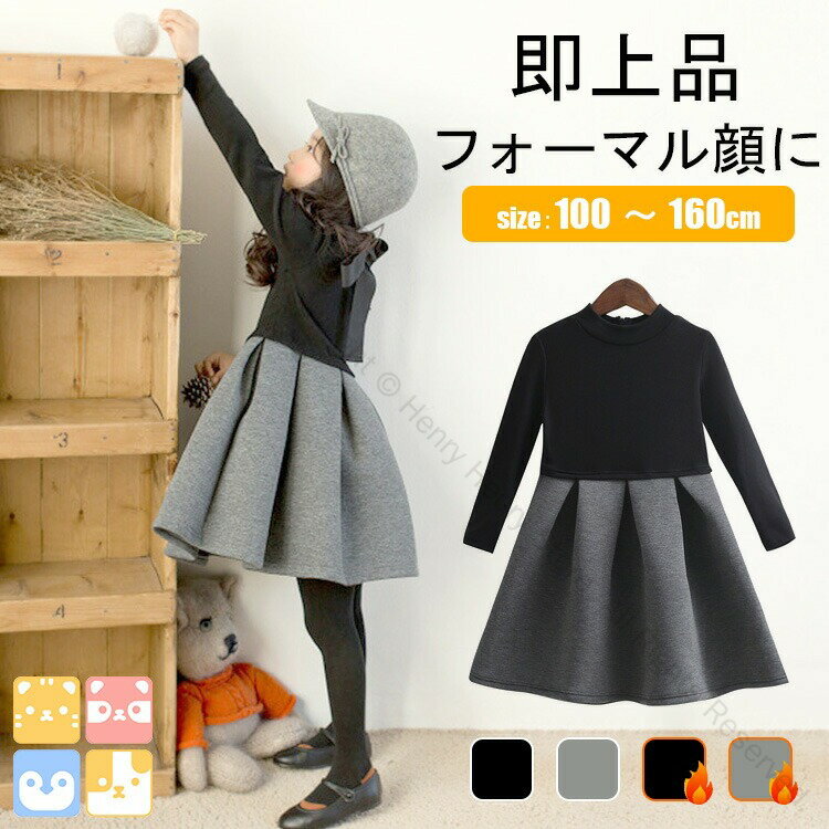 100cm-160cm キッズ 女の子 子供 トップス ドレス ワンピース 長袖 ガールズ スカート 発表会 七五三 フォーマルドレス 裏起毛 リボン付き 結婚式 ミディアム丈 おしゃれ Aライン 上品 カジュアル 可愛い 春秋冬 対応