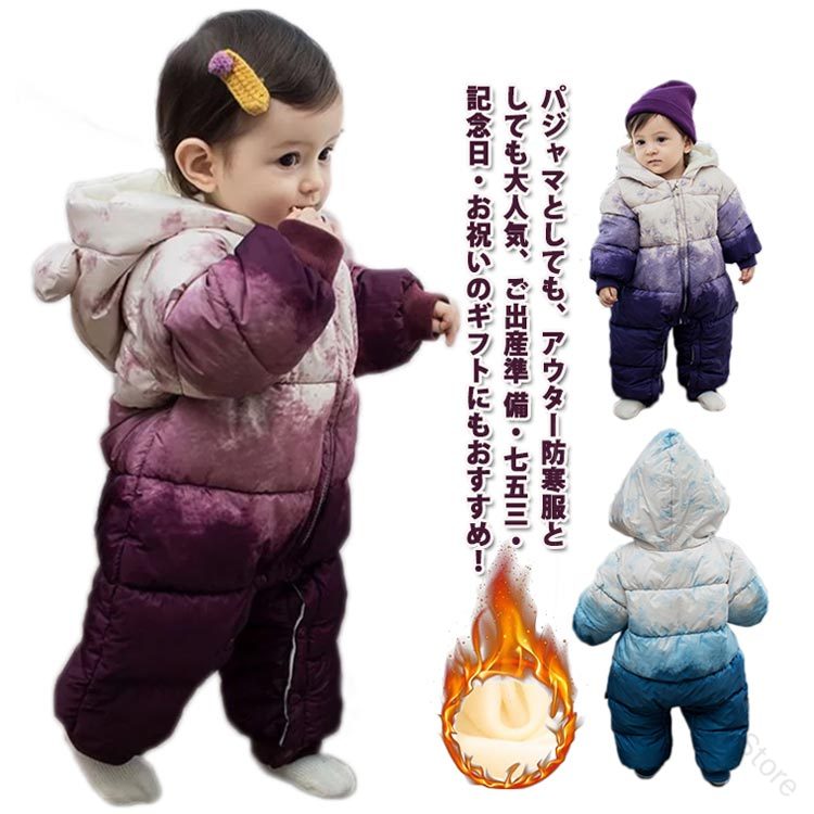 外へのお出かけや雪遊びに大活躍する赤ちゃん用防寒きぐるみですカートゥーンのフード付き、つば広デザインで防風・防寒性に優れ帽子にはかわいいクマの耳が付いており、赤ちゃんをさらにかわいくします。赤ちゃんのおむつ交換に便利な両口ファスナー袖口も防風仕様になっておりますベルベットの裏地デザイン、快適で暖かい生地も安全なのでママも安心して購入できます サイズ 66 73 80 90 100 サイズについての説明 66 着丈58 肩幅25.5 バスト60 袖丈24.5 お勧め年齢0〜3ヶ月 お勧め身長50-60cm お勧め体重6kg以内73 着丈62 肩幅27 バスト64 袖丈27 お勧め年齢3〜7ヶ月 お勧め身長60-65cm お勧め体重8kg以内80 着丈66 肩幅28.5 バスト68 袖丈29.5 お勧め年齢7〜12ヶ月 お勧め身長65-70cm お勧め体重10kg以内90 着丈71 肩幅30 バスト72 袖丈32 お勧め年齢12〜18ヶ月 お勧め身長70-75cm お勧め体重12.5kg以内100着丈76 肩幅31.5 バスト76 袖丈34.5 お勧め年齢18〜24ヶ月 お勧め身長75-85cm お勧め体重15kg以内※サイズ表の実寸法は商品によって1-3cm程度の誤差がある場合がございます。 素材 ポリエステル 中綿 色 タイプ1 タイプ2 タイプ3 タイプ4 タイプ5 タイプ6 タイプ7 備考 ●サイズ詳細等の測り方はスタッフ間で統一、徹底はしておりますが、実寸は商品によって若干の誤差(1cm〜3cm )がある場合がございますので、予めご了承ください。 ●商品の色は、撮影時の光や、お客様のモニターの色具合などにより、実際の商品と異なる場合がございます。あらかじめ、ご了承ください。 ●製品によっては、生地の特性上、洗濯時に縮む場合がございますので洗濯時はご注意下さいませ。 ▼色味の強い製品によっては他の衣類などに色移りする場合もございますので、速やかに(脱水、乾燥等)するようにお願いいたします。 ▼生地によっては摩擦や汗、雨などで濡れた時は、他の製品に移染する恐れがございますので、着用の際はご注意下さい。 ▼生地の特性上、やや匂いが強く感じられるものもございます。数日のご使用や陰干しなどで気になる匂いはほとんど感じられなくなります。 指定された配送時間は承っておりません。【Henry Henry Store】