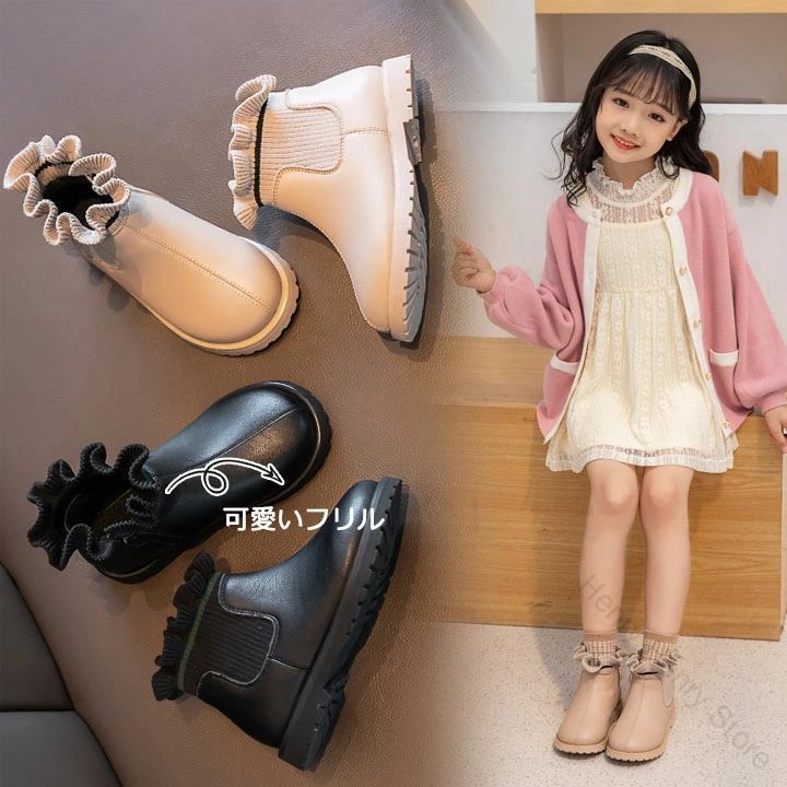 冬 春 秋 女の子 ブーツ キッズ 軽量 暖かい 裏起毛 ファスナー付き フリルデザイン おしゃれ 通園 通学 入園式 入学式 フォーマル 可愛い ピンク ブラック シューズ お出かけ 靴