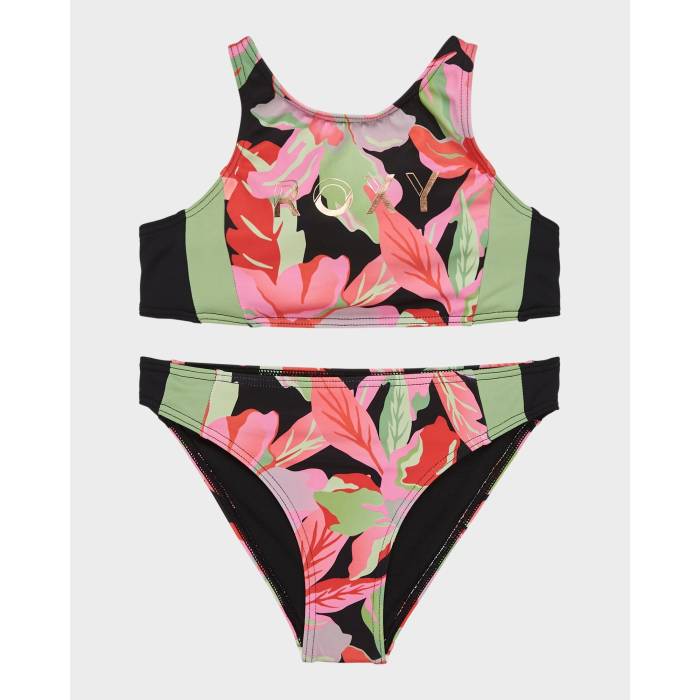 ロキシー Roxy 【 Girls 8-16 Active Regular Two Piece Girls Anthracite The Moves Floral 】 キッズ ベビー マタニティ キッズファッション 水着 ジュニア キッズ