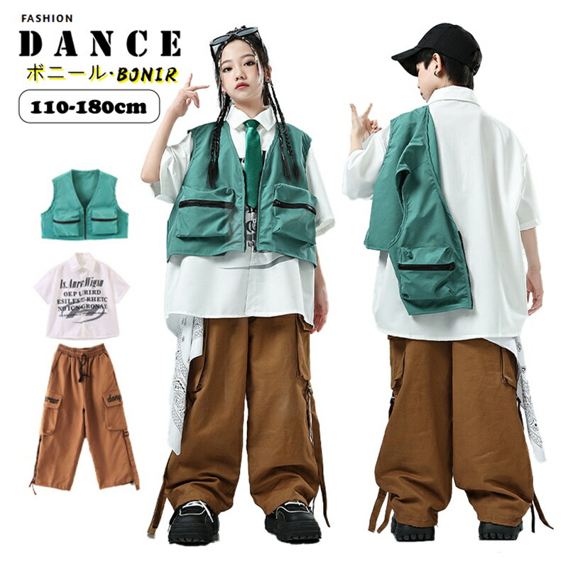 ダンス衣装 セットアップ キッズ ヒップホップ シャツ 男の子 女の子 男女兼用 チーム衣装 ベスト カーゴパンツ チアガール ステージ衣装 おしゃれ キッズ ダンスウェア カジュアル 団体服 応援団 演出服 発表会 JAZZ メンズ レディース DANCE 110~180