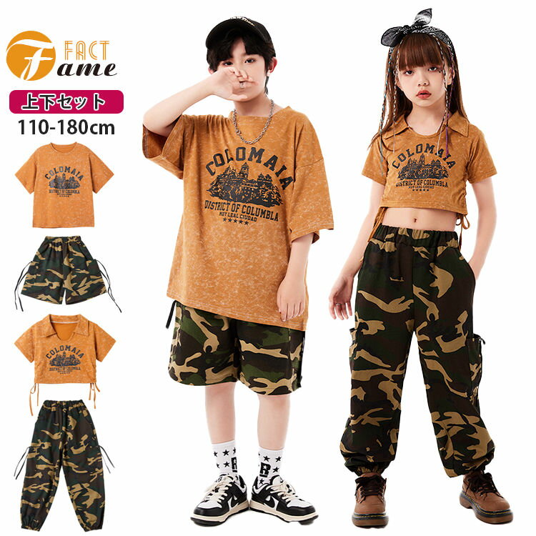 キッズ 半袖Tシャツ 迷彩 ロングパンツ セットアップ スポーツウエア トップス ダンス衣装 派手 女の子 迷彩パンツ 長ズボン レッスン ダンスウェア おしゃれ カジュアル レディース メンズ DANCE hiphop 普段着 練習着 大きいサイズ 110-180cm