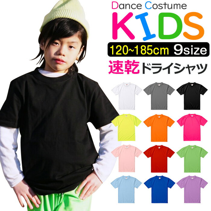 DRYシャツ サラサラ 無地 13カラー シャツ 半袖 Tシャツ 女の子 男の子 子供服 グリーン ブルー ラベンダー ホワイト グレー ブラック ピンク オレンジ レッド 120cm 130cm 140cm 150cm 160cm 170cm ガールズ レディス メンズ ダンス衣装 ヒップホップ