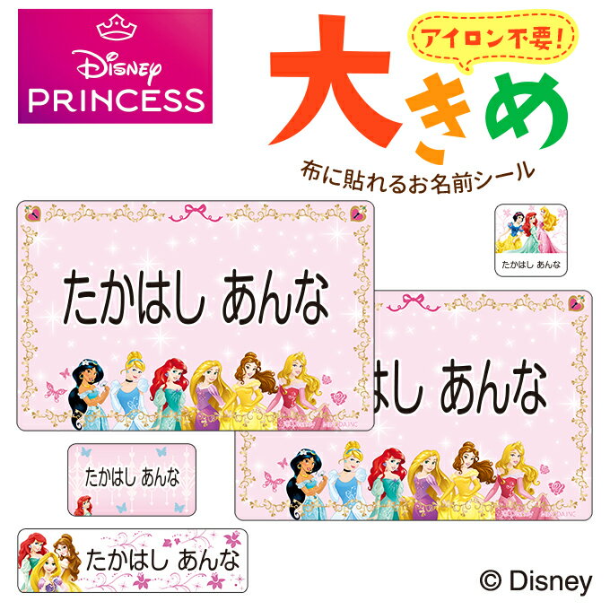 お名前シール 大きい プリンセス ディズニー ノンアイロン お昼寝布団 ゼッケン 布用 布に貼れる 洗濯OK アイロン不要 洋服 衣類 送料無料 PR入園 入学 グッズ キャラクター ローマ字 ひらがな 幼稚園 保育園 楽天 子供 ネームシール 名前しーる【Disneyzone】