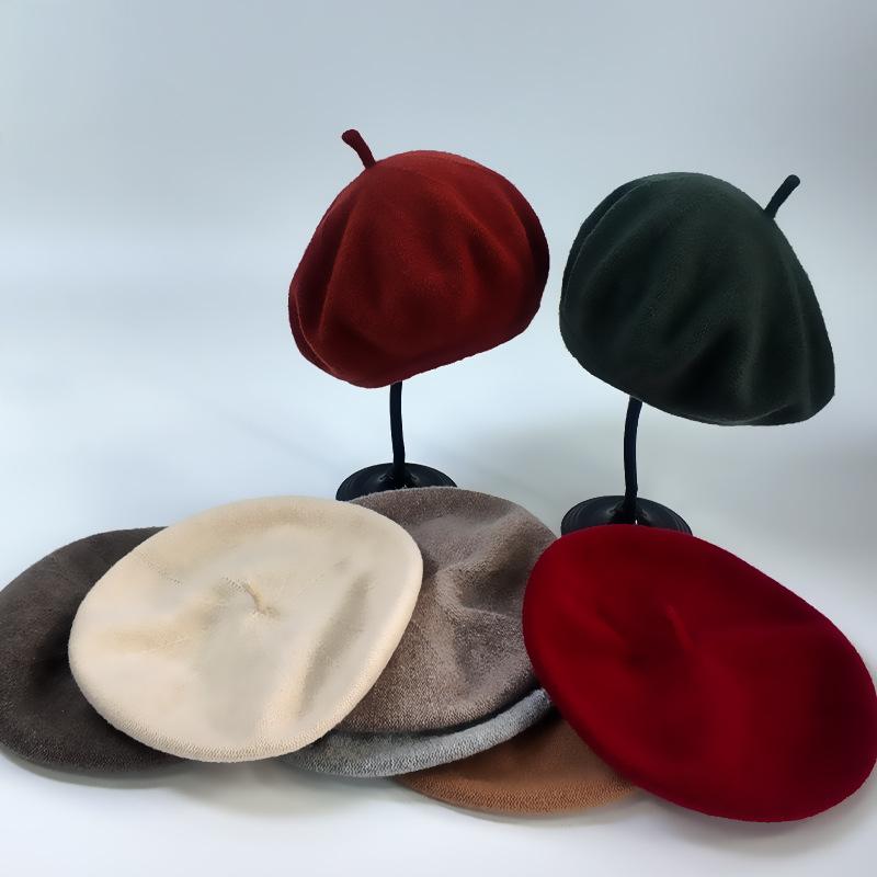 ベレー帽 キッズ ウール あったか 防寒 帽子 子供用 浅灰色 浅棕色 オリーブ 緑色 秋冬 学生 男の子 女の子 8歳 9歳 10歳