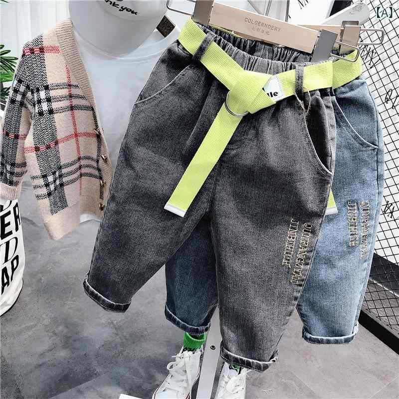 子供用ジーンズ 男児 ストレッチ デニムパンツ ロングパンツ 伸縮性 普段着 中小サイズ 春秋 ブラック系 ブルー系