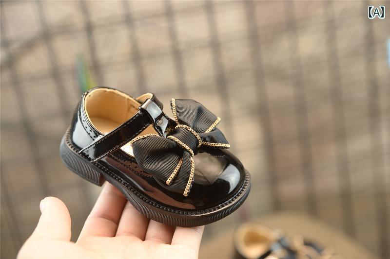 ベビー 幼児 プリンセス 女の子 シューズ 通気性 アンチ キック ブラック ベージュ 春秋 リボン レトロ カジュアル