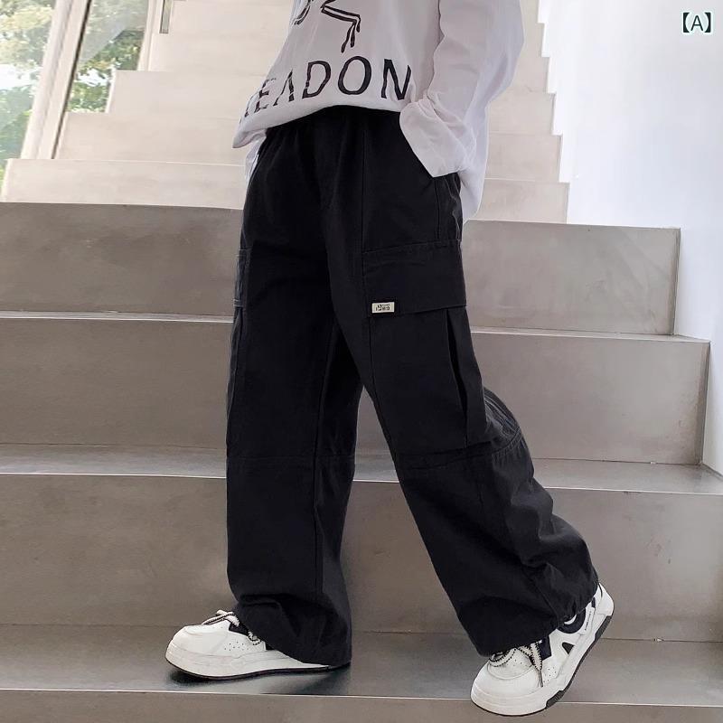 パンツ ズボン 男の子 ジュニア カジュアル カーゴ ストリート 普段使い 通学 春秋 ポリエステル 長ズボン 無地 ソフトタッチ ゴムウエスト ブラック グレー