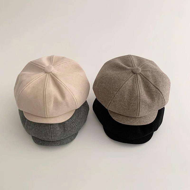 帽子 キッズ用ベレー帽 秋冬 防風 防寒 男の子 女の子 ウール混紡 3歳 4歳 5歳 6歳 ベージュ モカ グレー ブラック
