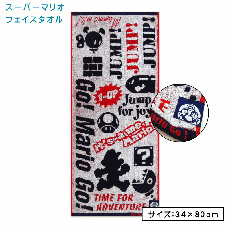 【エントリーで最大P6倍 27日1:59迄】スーパーマリオ フェイスタオル 34×80cm 綿100% パイルジャガード はみ出しアップリケ 抗菌防臭加工 キャラクター コイン キノコ スター キラー クリボー 手拭き 顔拭きタオル しっかり目が詰まった良質タオル [ft1]【メール便OK】
