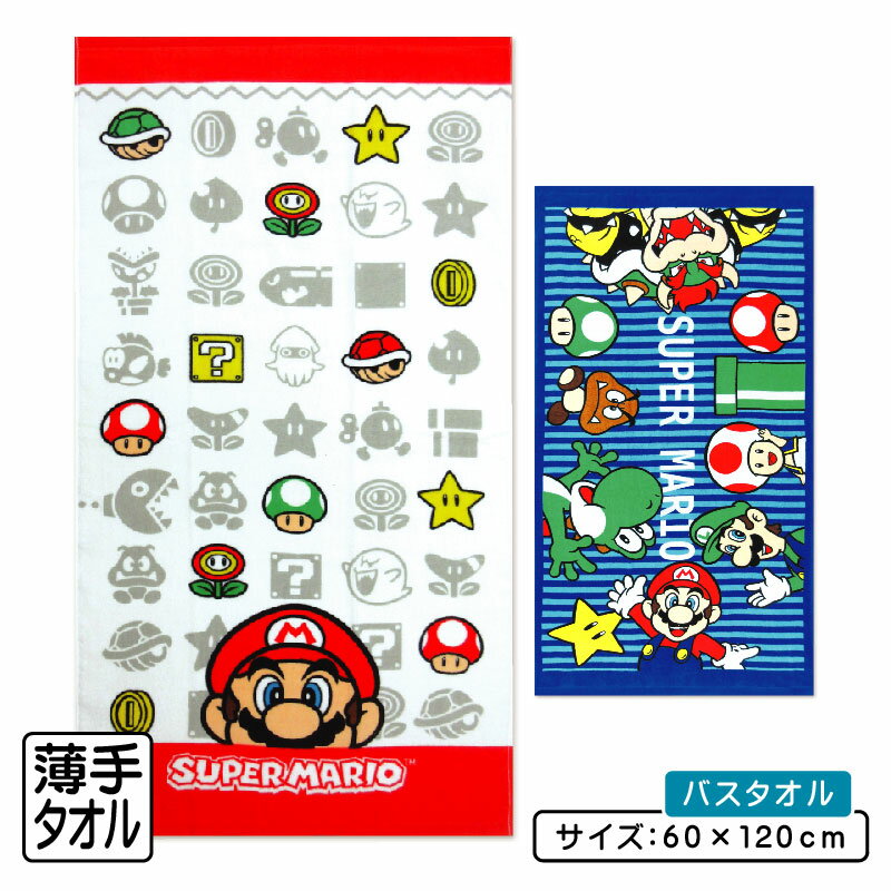 ●商品説明 キャラクターバスタオル ・キャラクター: スーパーマリオ クリボー テレサ ノコノコ プクプク キラー ボム兵 ワンワン パックンフラワー ゲッソー キノコ フラワー スター コイン スーパーこのは はてなブロック ドカン ブーメランフラワー 1UPキノコ ルイージ ヨッシー クッパ ピノキオ ・サイズ:約60cm×120cm ・素材:綿100% ●備考 ■綿100% 肌に優しい綿100%のため、通気性・吸湿性が良く柔らかい肌触りです。 ■表地(シャーリング加工) パイルの表面をカットして、ビロードのような滑らかな風合いを持たせたタイプ。 表面が緻密なので、プリントが美しく染めあがります。 ■裏地(パイル地) 裏地は、フワッとした肌触りで吸水性があるパイル地。 レジャーでは、海やプールで活躍しお風呂上りの際やジョギングなどの汗拭きタオルとしてもご使用頂いているお子様に大人気の商品です! ●配送方法 ・宅配便 ・メール便(メール便A) ・ご利用頂くシーン(季節のイベント) 1月 お年玉 お年賀 成人の日 2月 バレンタインデー 3月 ホワイトデー 卒業 卒団 卒園 卒部 春休み 4月 入園 入学 進級 新生活 入社祝い 5月 ゴールデンウィーク こどもの日 母の日 6月 父の日 7月 七夕 お中元 御中元 暑中見舞い 8月 夏休み お盆 盆玉 帰郷 帰省 9月 敬老の日 シルバーウィーク 10月 孫の日 運動会 体育祭 学園祭 文化祭 お遊戯会 ブライダル ハロウィン 11月 勤労感謝の日 12月 クリスマス 大晦日 冬休み お歳暮 御歳暮 ・贈り物(プレゼント)・お祝い 誕生日 入園祝い 入学祝い 卒業祝い 記念品 参加賞 お見舞い 退院祝い 全快祝い 快気祝い ご挨拶 引越し 引っ越し 新築祝い