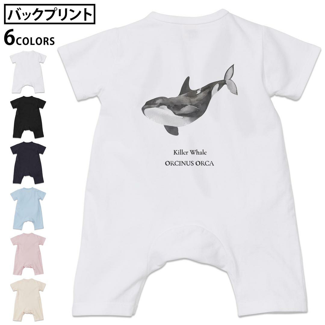 選べる6カラー バックプリント ロンパース カバーオール 赤ちゃん 半袖 デザイン 70cm 80cm rompers ベビー 新生児 キッズ 70サイズ 80サイズ ギフト マタニティ 妊婦 出産祝い プレママ ティーシャツ T shirt 019743 海の生物 シャチ killer whale