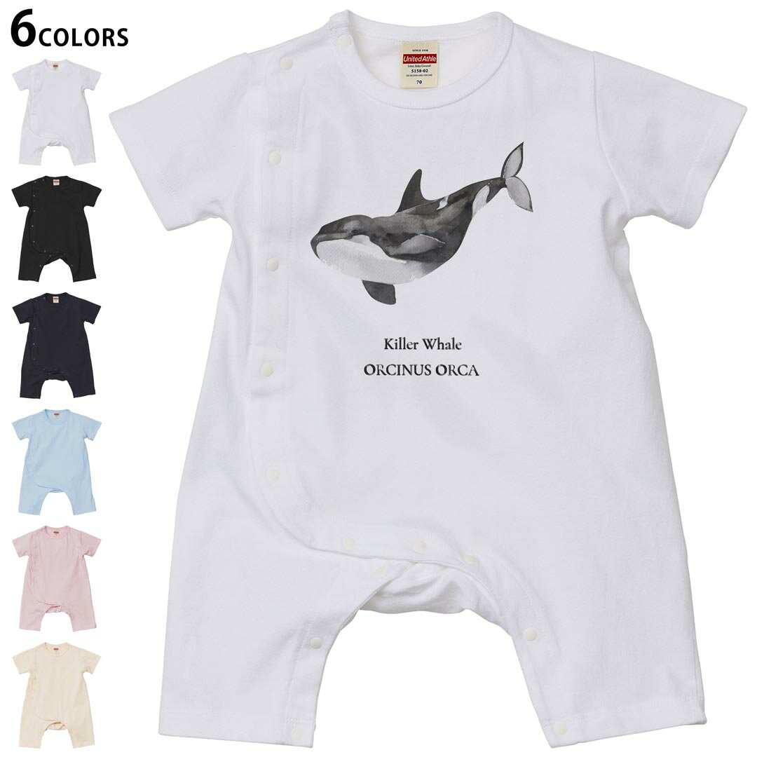 選べる6カラー ロンパース カバーオール 赤ちゃん 半袖 デザイン 70cm 80cm rompers ベビー 新生児 キッズ 70サイズ 80サイズ ギフト マタニティ 妊婦 出産祝い プレママ ティーシャツ T shirt 019743 海の生物 シャチ killer whale