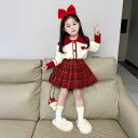 ニットカーディガン 女の子 キッズ ガールズ 秋冬 韓国風 レトロ ハート柄 切り替え かわいい 綿混 柔らか 長袖 ラウンドネック 前開き お出かけ 通園 レッド系 アイボリー