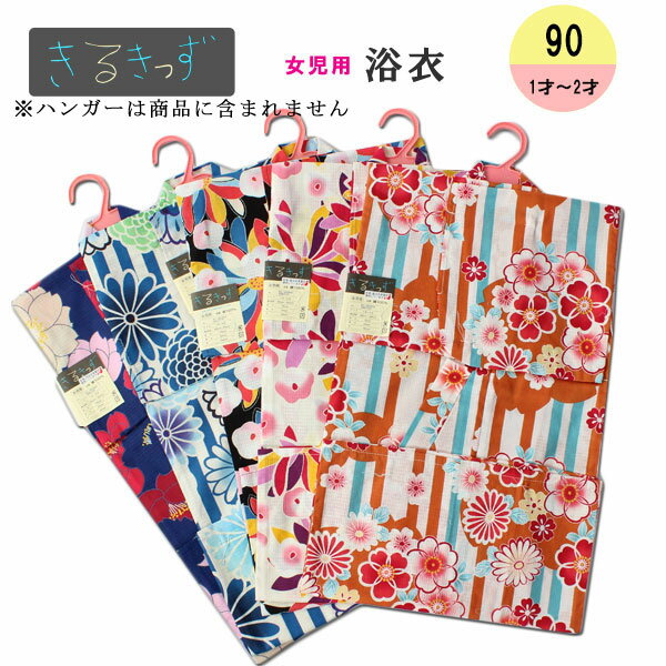 きるきっず・子供プレタ浴衣女児用花模様90サイズ、1-2才【メール便OK】key-13