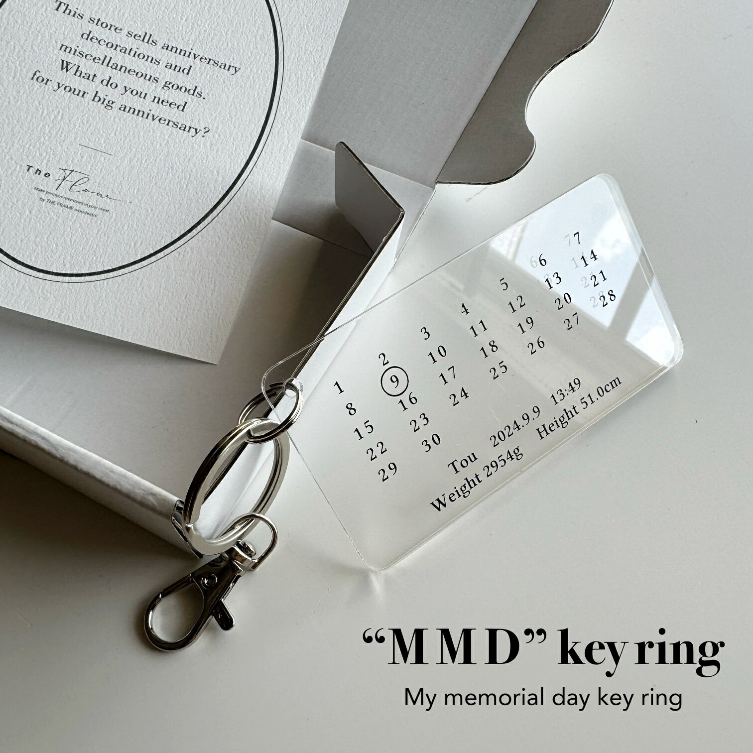 MMD keyring My Memorial Key Ring メモリアル キーリング オーダー アクリル キーホルダー 記念日 誕生日 結婚記念日 カレンダー オリジナル 30文字入力 名入れ 出生情報 名前刻印 出産祝い ネコポス対応 家族 夫婦 お揃い ギフト箱付き 【MMD keyring】