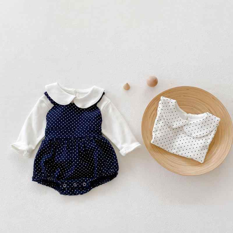 ベビー服 女の子 赤ちゃん 幼児 秋冬 星柄 サロペット ロンパース オーバーオール 長袖 Tシャツ トップス 綿 かわいい カジュアル 普段着 2点セット