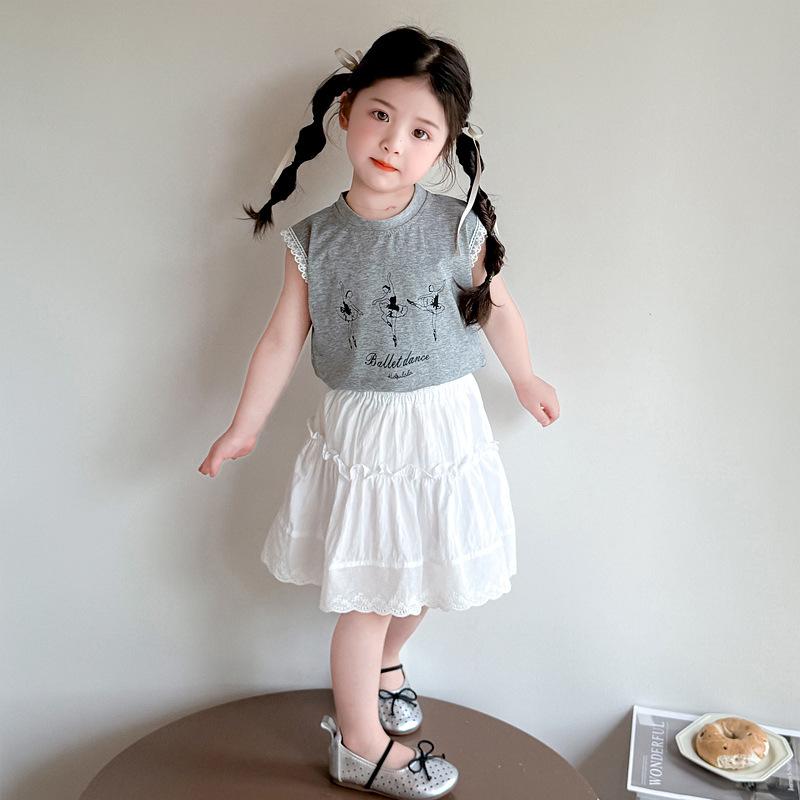 スカートセット 女の子 キッズ 子供服 夏物 ノースリーブ トップス 上下セット 薄手 綿混 ポリエステル おしゃれ かわいい 普段使い お出かけ 韓国風