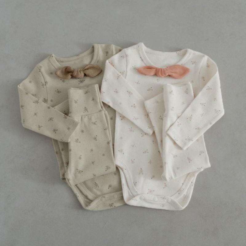 ベビー服 春秋物 パンツセット コットン 花柄 蝶結び ロンパース 高腰 腹巻 2点セット 66cm 73cm 80cm 90cm