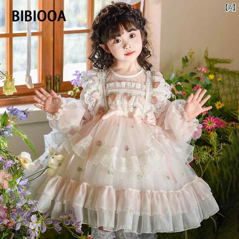 ワンピース 女の子 子供 長袖 春秋 プリンセス ピンク かわいい チュール 発表会 結婚式 パーティー