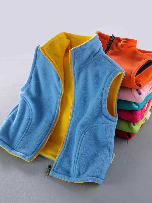 子供用フリースベスト 厚手 春秋 冬 男女兼用 アウター 保温 幼稚園 制服 ロゴ プリント対応(x2)